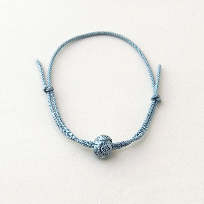 昔ながらの製紐機で作られた組紐を職人さんの手仕事でブレスレットに仕上げています。江戸紐に小田巻という玉を乗せたシンプルなブレスレットです。