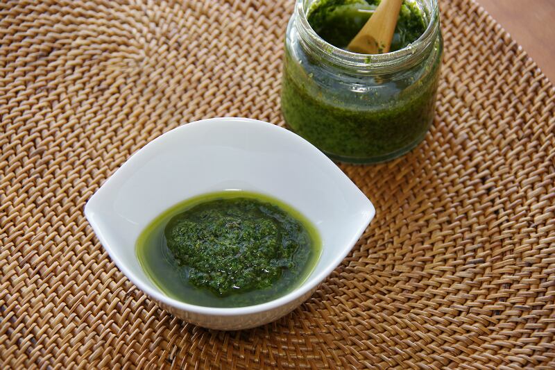 こちらのバジルペーストは、愛媛産の新鮮なバジルをふんだんに使用し、無添加で仕上げています。収穫から24時間以内に加工。鮮やかな色とフレッシュな香りが詰まっています。