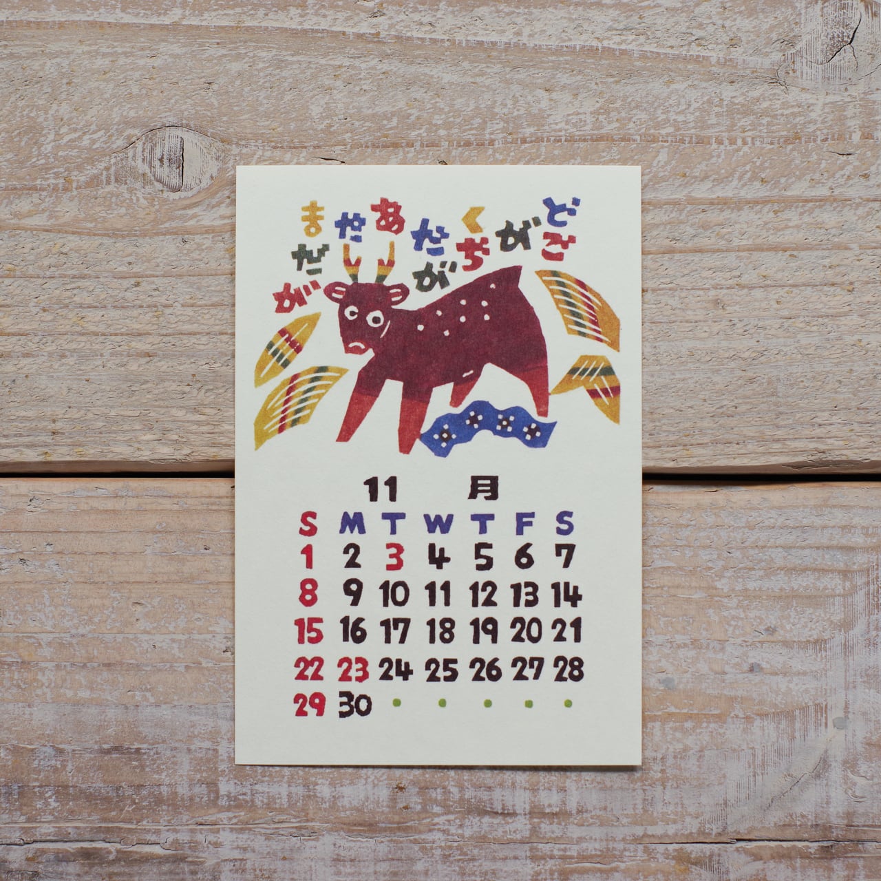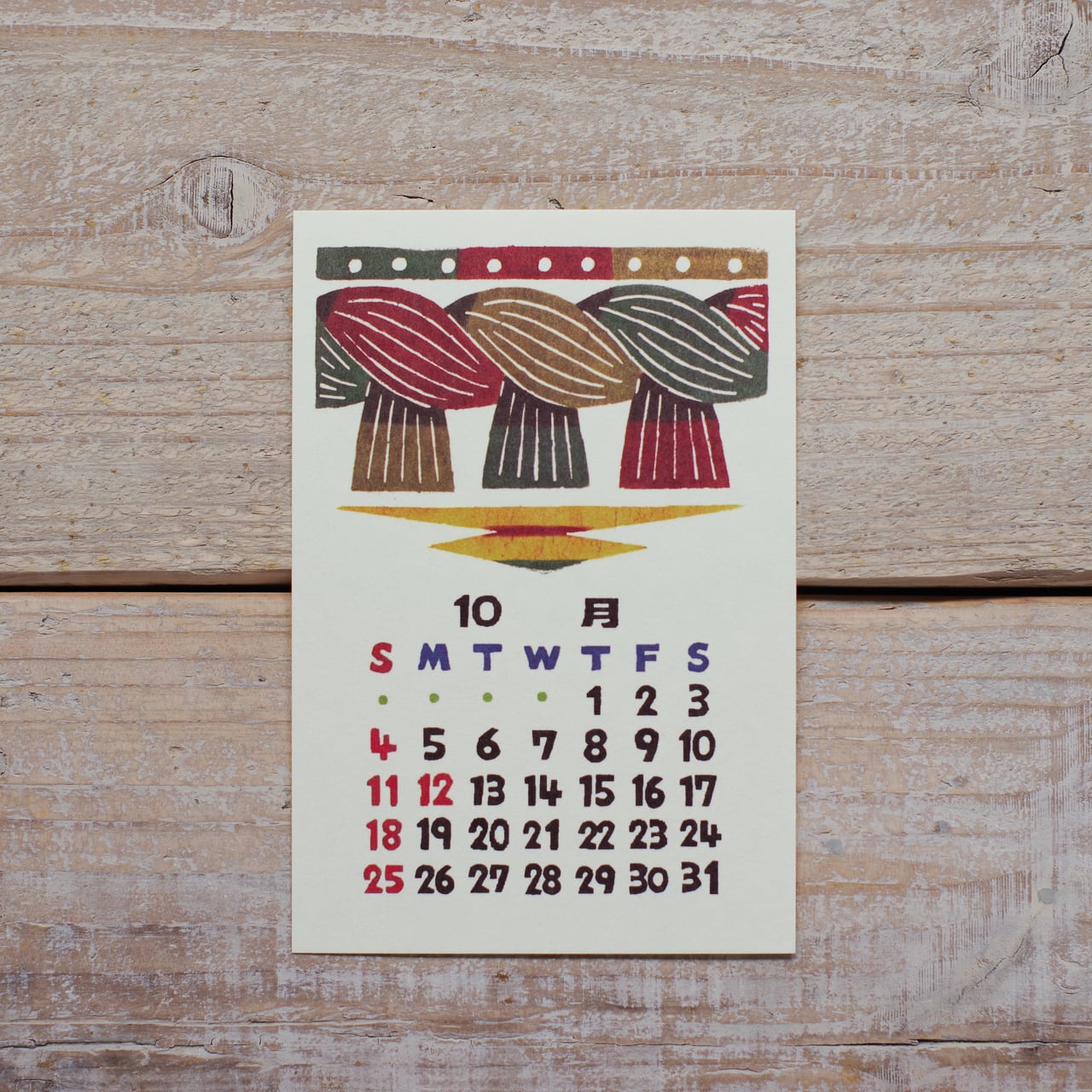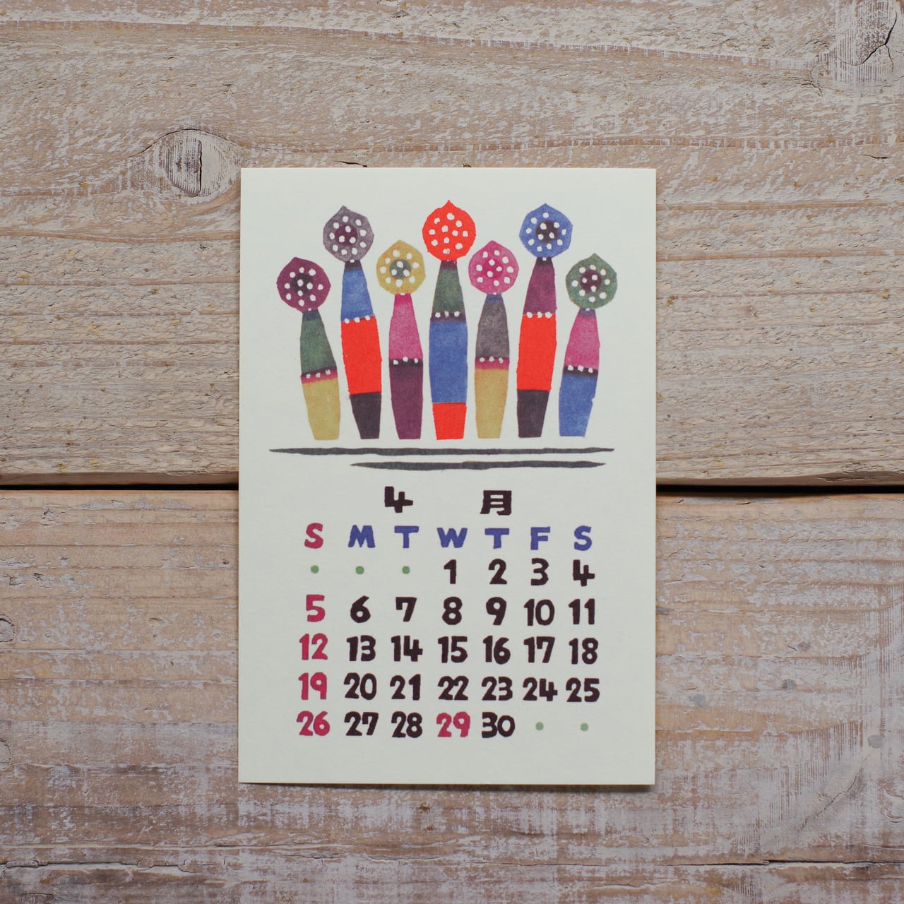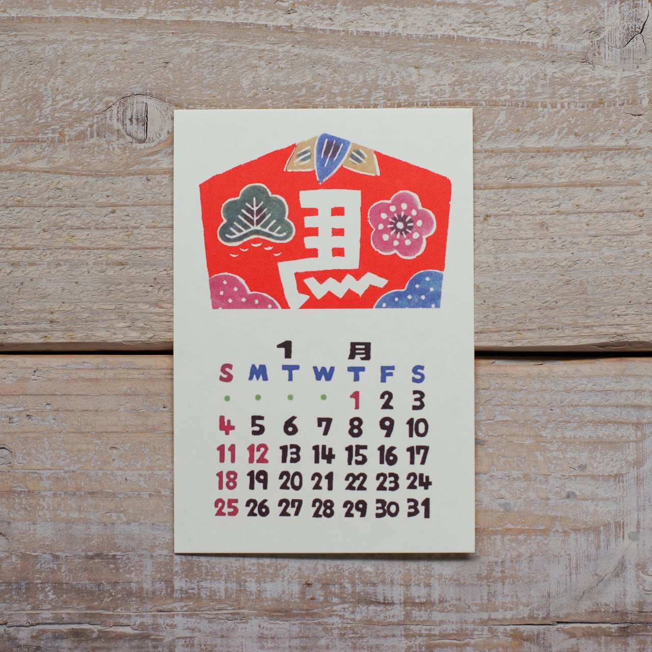 染色家・芹沢銈介(1895-1984)のもとで研鑽を積んだ小田中さんならではの優しく明るい色彩と簡素で温かみのある意匠を月めくりの卓上カレンダーに仕立てました。