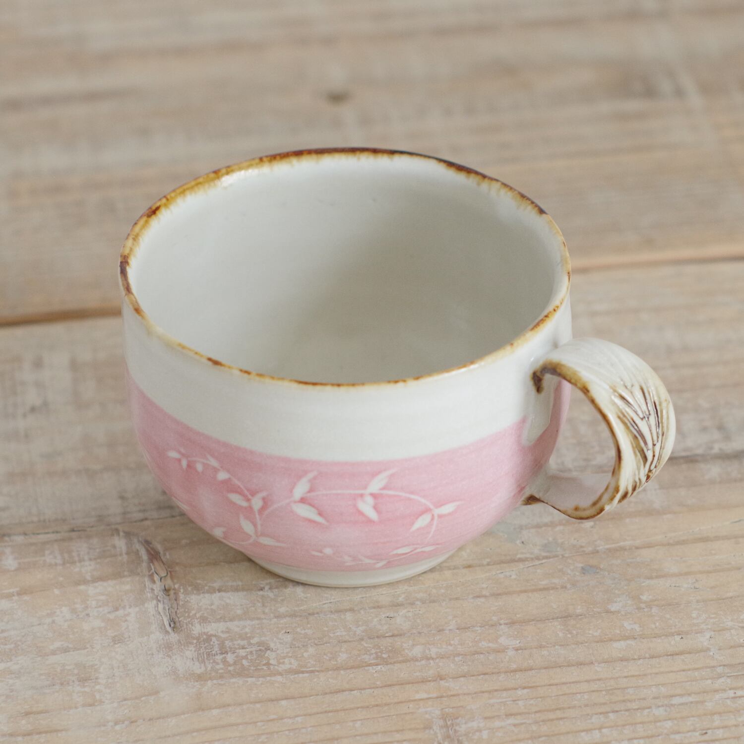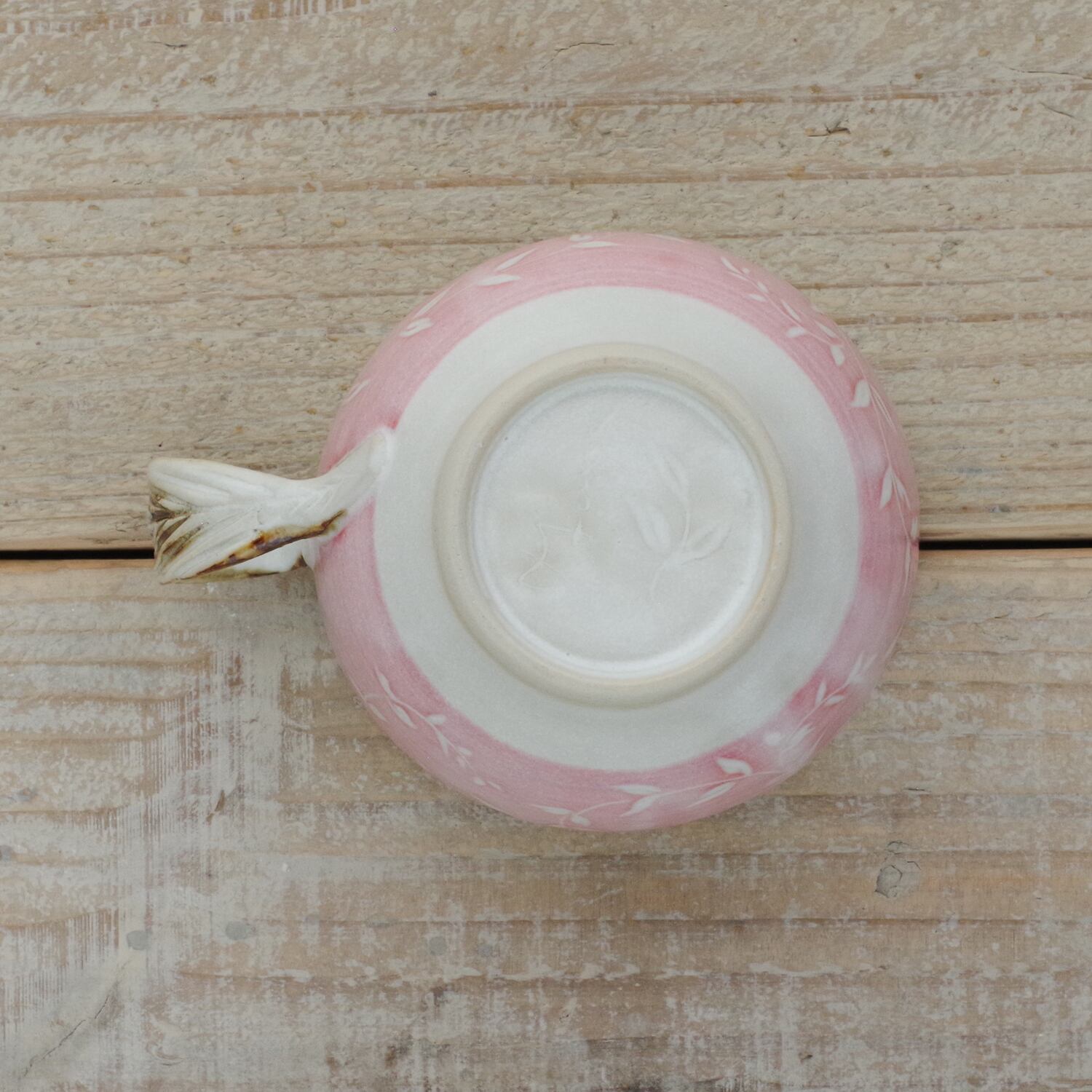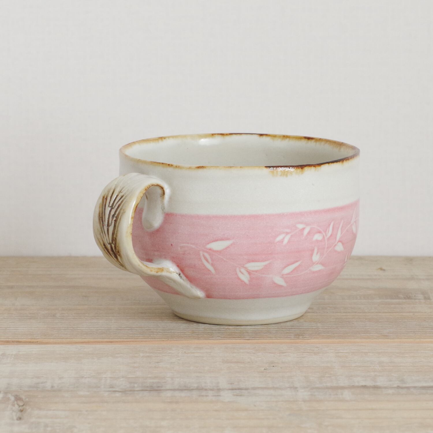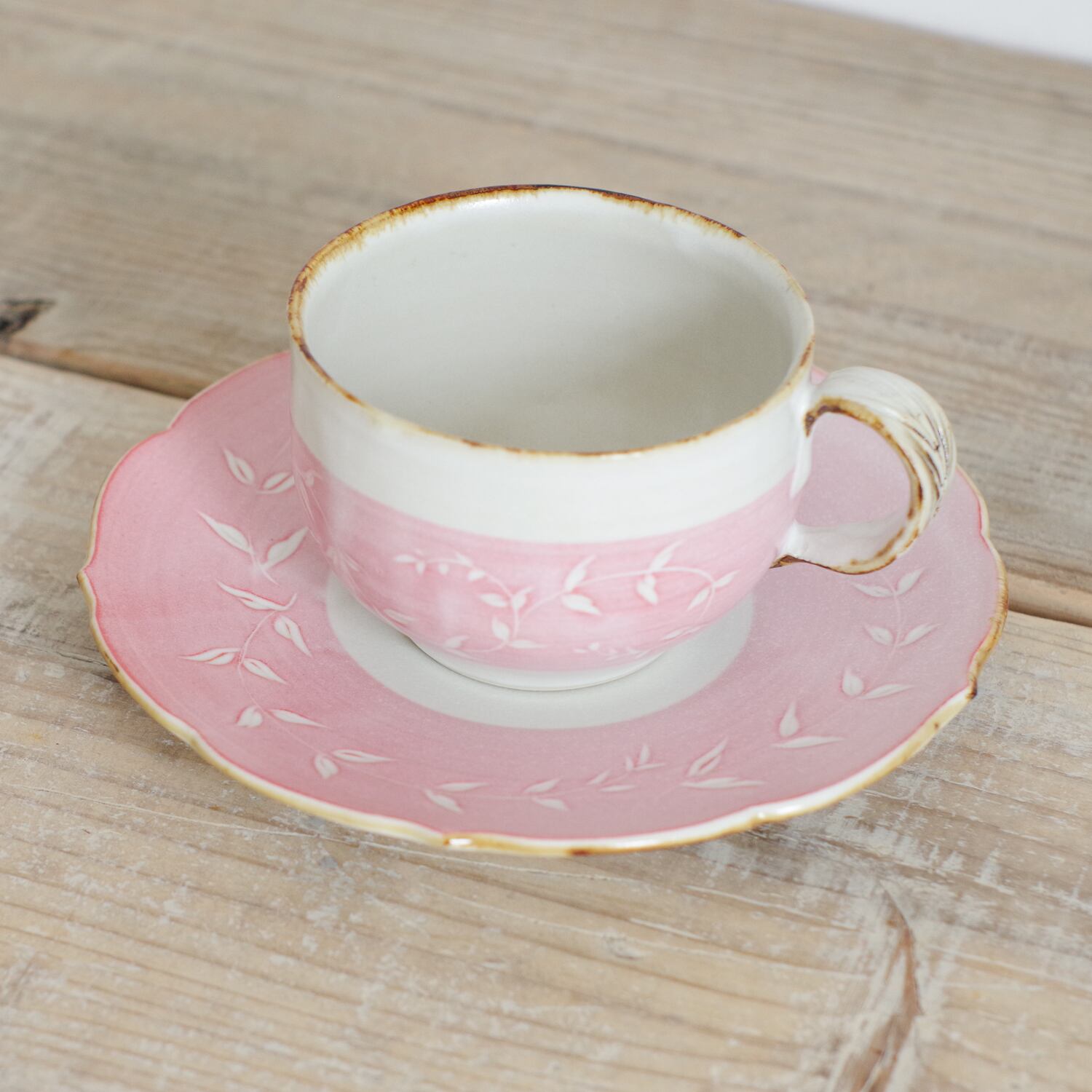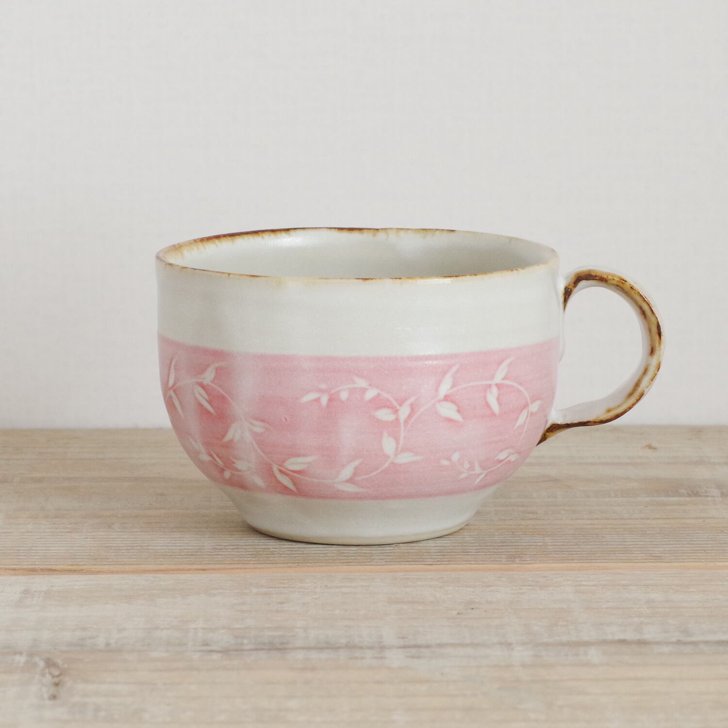 山内卓夫 カップ&ソーサー リーフ柄 ピンク 信楽焼 滋賀県産【伝統工芸品】【民藝品】【食器 陶器 うつわ】【ギフト プレゼント】【成人祝い 合格祝い】 | TABITOTE STORE 旅と手仕事の店