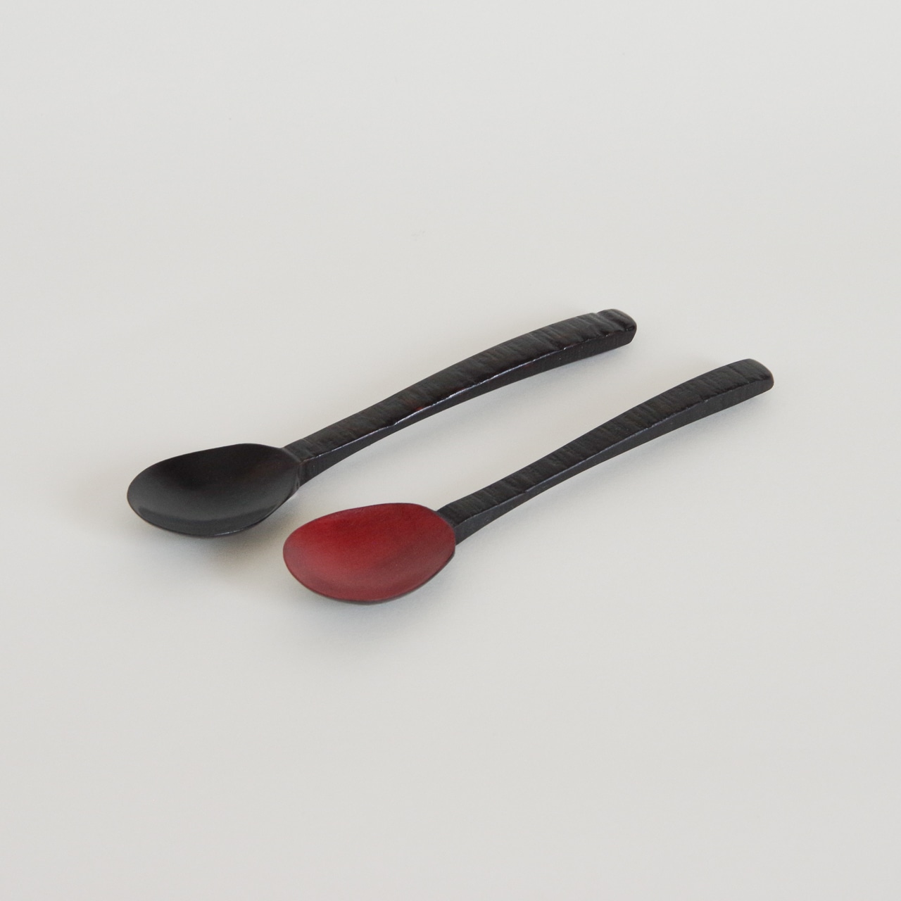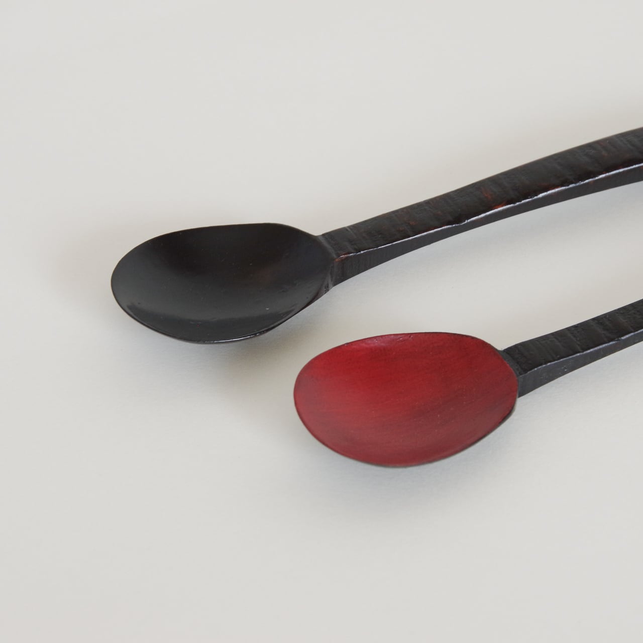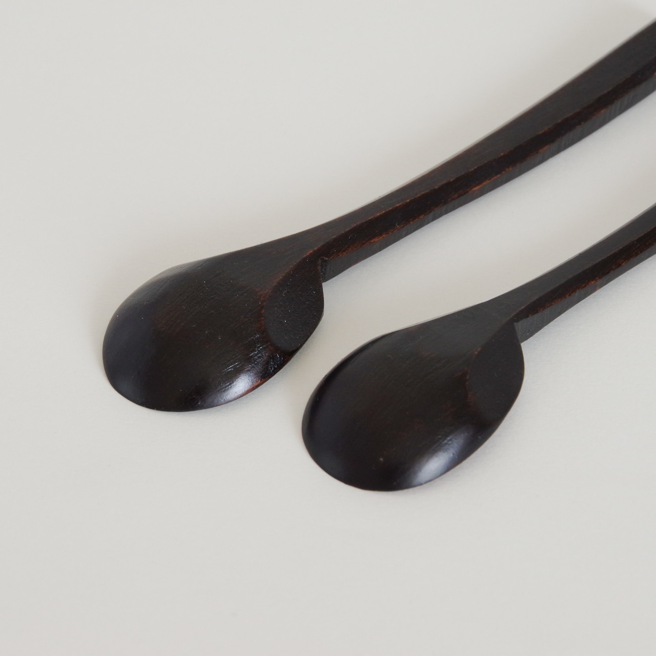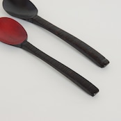 木地を削り出し漆を塗り重ねて製作したスプーンです。持ち手は挽き目仕上げでしっかりと持てるようにしています。先は薄く削っているのでシャープな口当たりになります。