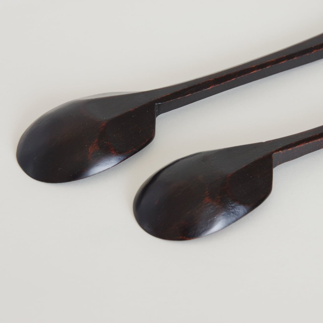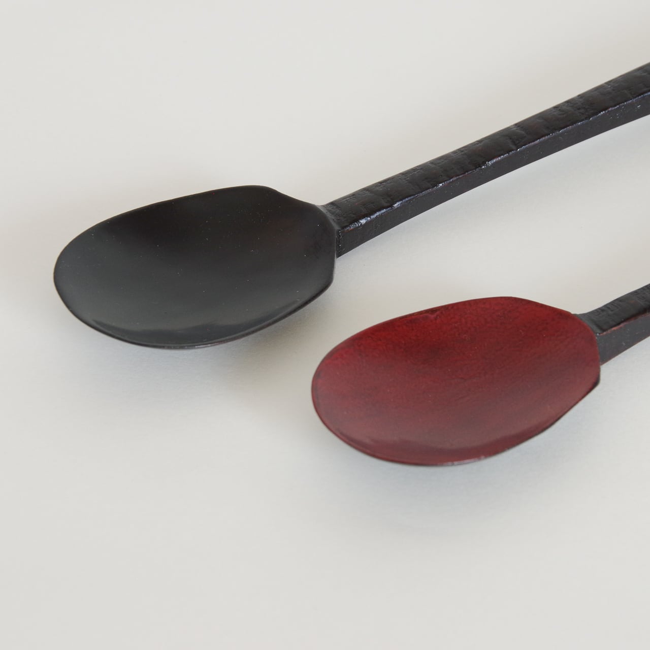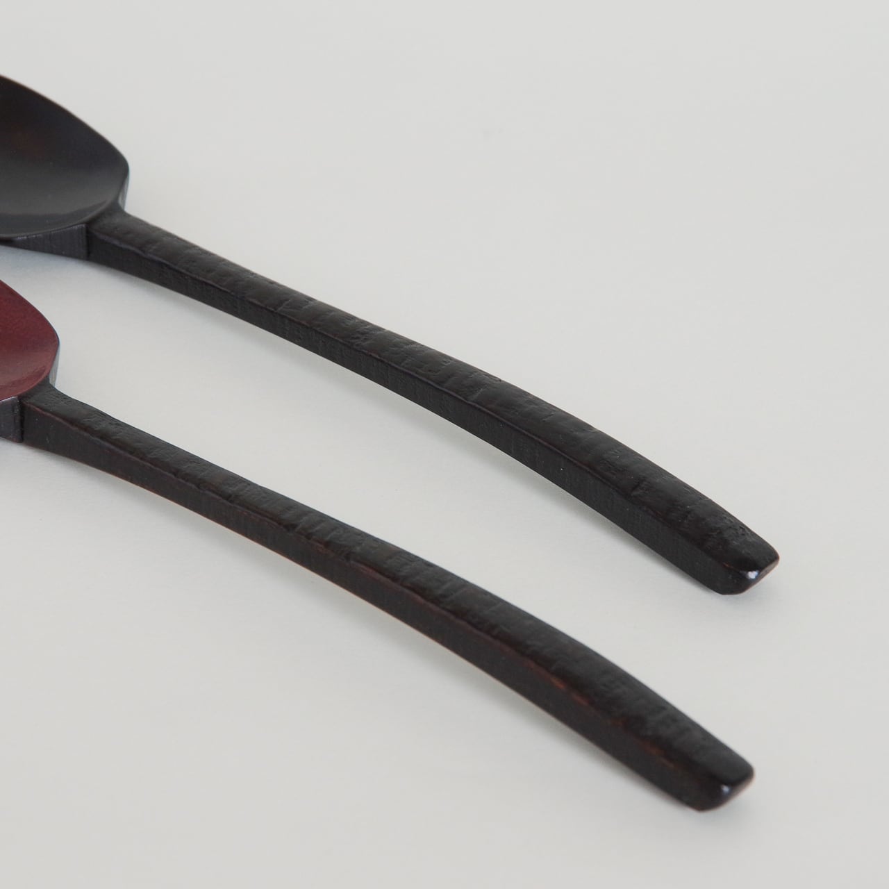 木地を削り出し漆を塗り重ねて製作したスプーンです。持ち手は挽き目仕上げでしっかりと持てるようにしています。先は薄く削っているのでシャープな口当たりになります。
