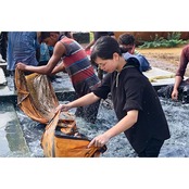 インドの西の果て、カッチ地方のアジュラクプールで天然染料のブロックプリントをしています。本来はムスリムだけ、男だけの工房ですが、テキスタイルアーティストとして単身で乗り込み、従来にない、この技法ならではの模様を表現しています。